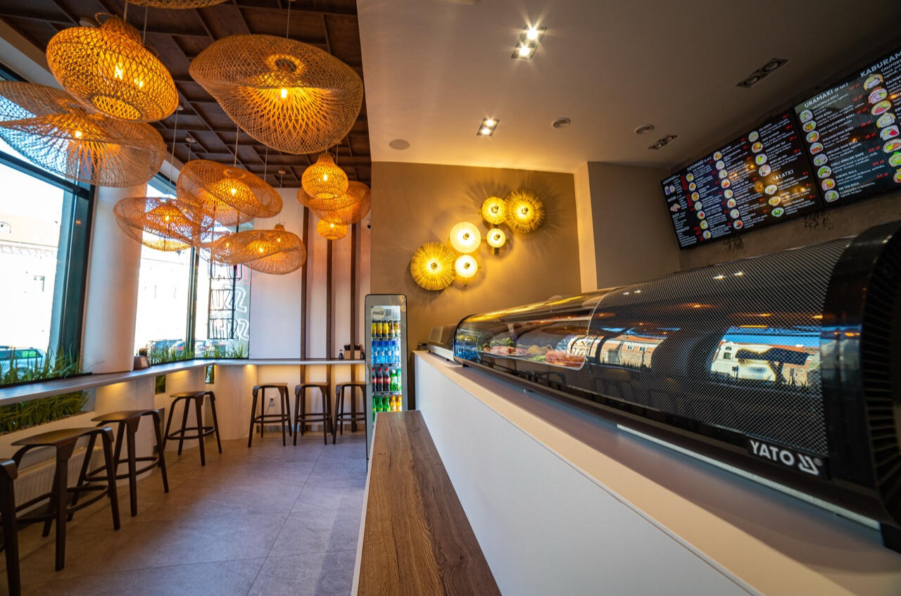 Witaj w naszym stylowym japońskim sushi barze, gdzie elegancja spotyka się z autentycznym smakiem Dalekiego Wschodu.Wnętrze zachwyca wysokimi krzesłami, stylowymi lampami i nowoczesnym designem, tworząc wyjątkową atmosferę.Serwujemy najwyższej jakości sushi oraz ciepłe dania, takie jak aromatyczne makarony, azjatyckie boxy, pierożki gyoza czy zupa wonton. Nasze menu łączy doskonały smak, świeże składniki i konkurencyjne ceny.Odwiedź nas i poczuj klimat Japonii! 🍣✨